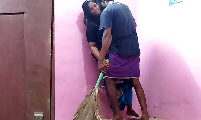 fille sexy mince nettoyant la maison et baisée durement par le propriétaire de la maison