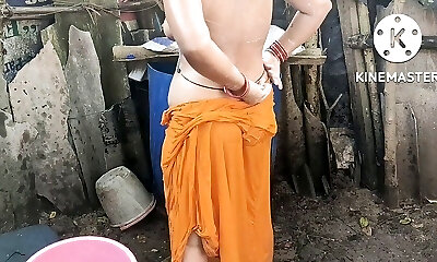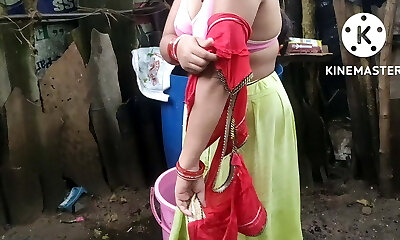 Anita yadav bathing outside with warm