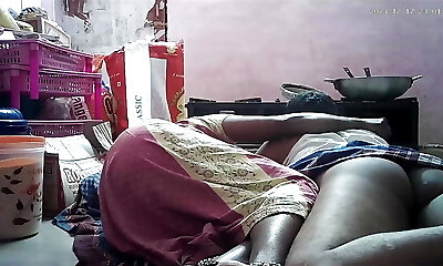 indiano duo romanticismo in cucina-saree romp-saree sollevato e culo schiaffeggiato